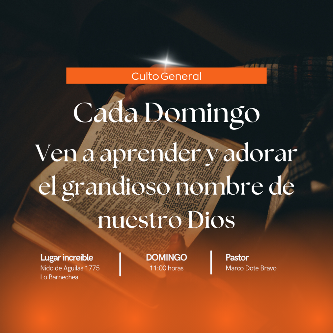 Cada domingo 11:00 horas te invitamos a nuestro culto general el cual se realiza en el Templo Nido de Águilas, calle nido de águilas 1775 Lo Barnechea, te esperamos!!!.
